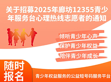 2025年公益服务 | 关于招募2025年廊坊12355青少年服务台心理热线志愿者的通知